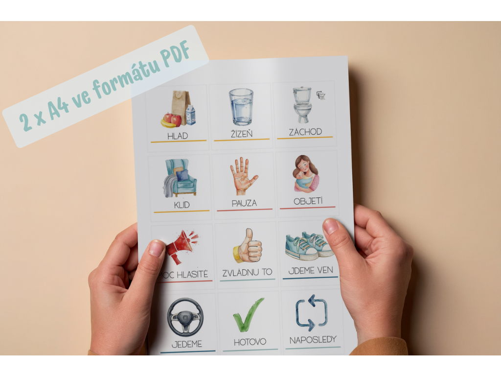 Tip pro vás: Pro nejlepší výsledek doporučuji tisknout na tvrdší papír (cca 160–200 g/m²). Kartičky stačí vystřihnout, děrovačkou udělat dírku a provléknout na kroužek – přesně tak, jak to znáte z naší fyzické sady.