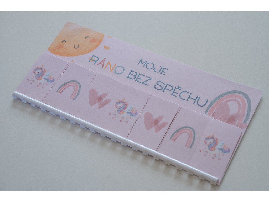 „Naše materiály volíme tak, aby zvládly ranní shon i večerní únavu. Používáme vysokogramážní papír a kvalitní úpravu, díky které se karty jen tak nepomačkají a rohy se netřepí hned po prvním týdnu. Přestože jsou naše produkty poctivě vyrobené, jsou stále z papíru – nůžkám nebo koupeli ve vaně neodolají, ale při běžném používání budou vašimi parťáky dlouho.“